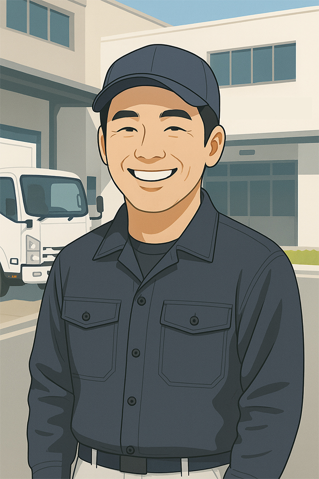 VOICE01入社1年目 30代男性未経験から一歩ずつ、確かな成長を地方出身ですが、会社の温かい雰囲気に支えられ、安心して仕事に取り組めています。未経験スタートでしたが、資格取得支援制度を活用して中型免許を取得し、スキルアップにつながっています。お客様から「ありがとう」と言われる瞬間が嬉しく、仕事の励みになっています。
